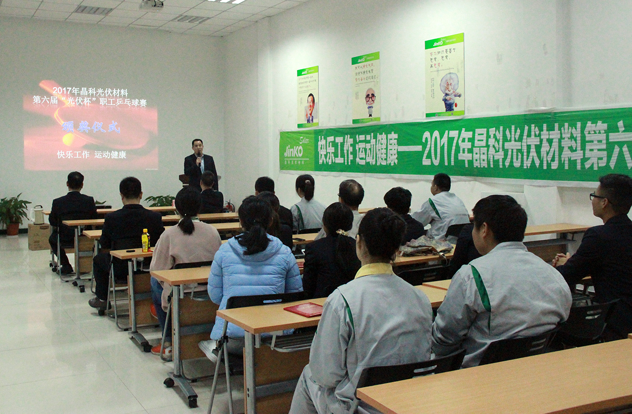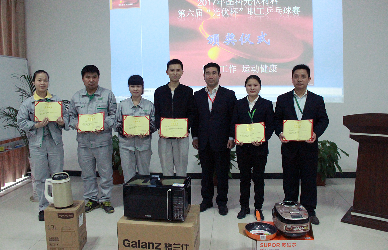 為促進公司企業(yè)文化建設(shè),增強員工體質(zhì),加深同事間的了解與交流,培養(yǎng)員工團結(jié)合作精神。在公司的大力支持下,公司人力行政部牽頭,于3月24日-29日內(nèi)多個下午組織了一場乒乓球比賽,經(jīng)過半個月的精心籌備, 3月24日14點,2017年晶科光伏材料第六屆“光伏杯”職工乒乓球賽拉開帷幕。