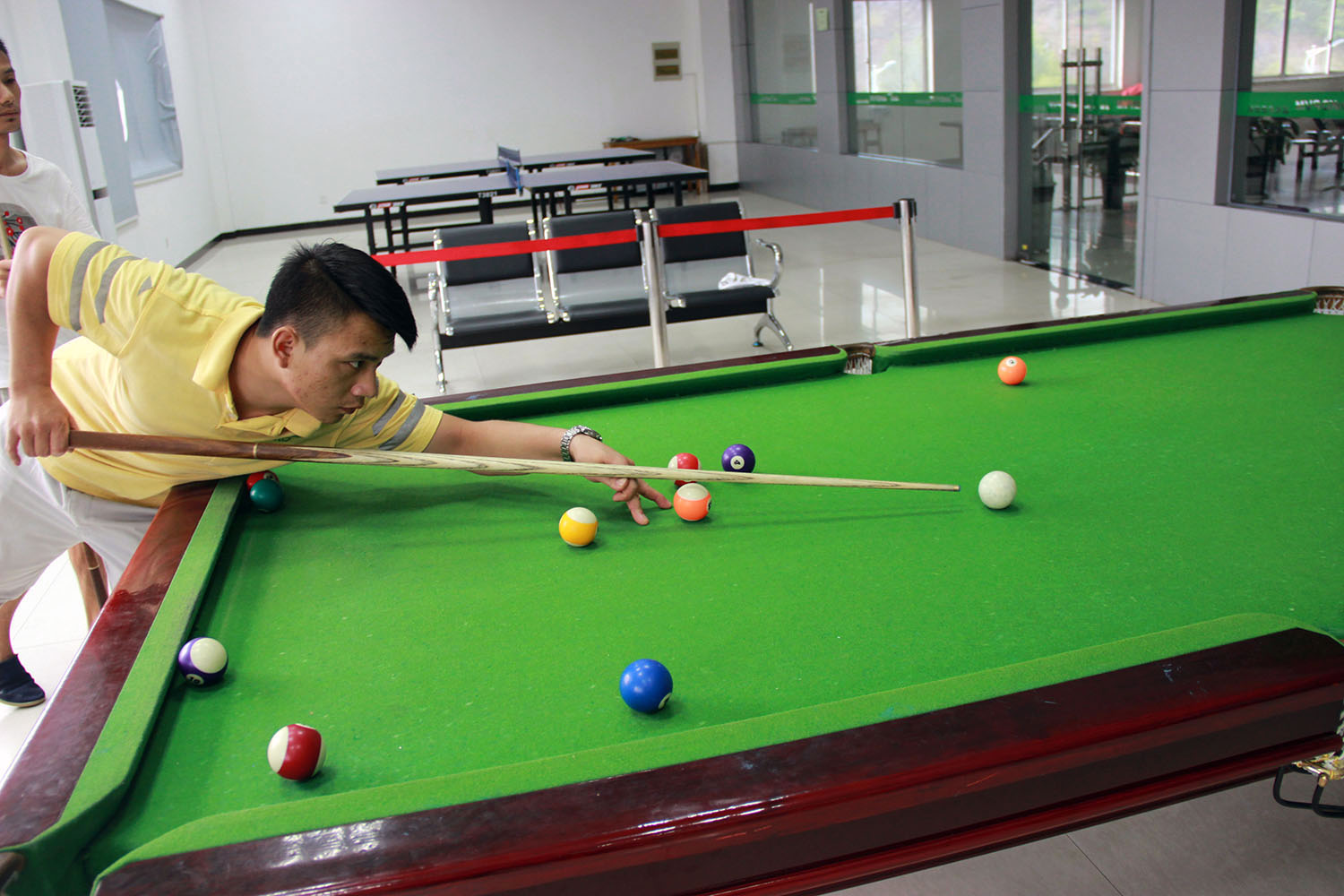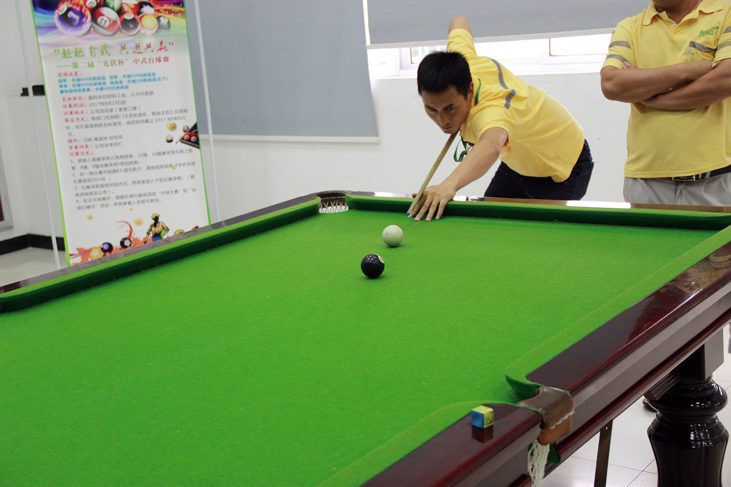 2017年8月23日下午2:00,由晶科光伏工會、人力行政部主辦的第二屆“光伏杯”中式臺球賽拉開序幕,本次比賽由來自于各車間各部門的43位選手組成,競賽規(guī)則遵循中式臺球比賽規(guī)則2014。資格入圍賽采用三局兩勝制,32強(qiáng)、16強(qiáng)賽采用五局三勝制。