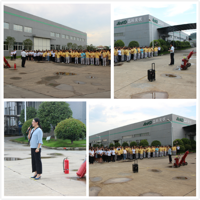 為響應(yīng)2019年全國(guó)安全生產(chǎn)月“防風(fēng)險(xiǎn)、除隱患、遏事故”主題,進(jìn)一步強(qiáng)化公司全體員工消防安全意識(shí),提高員工防火救災(zāi)的實(shí)戰(zhàn)技能,2019年6月20日下午,晶科光伏材料公司成功開(kāi)展消防應(yīng)急演練活動(dòng)。生產(chǎn)制造部門(mén)、相關(guān)職能部門(mén)以及保安隊(duì)等近四百余人參加了本次消防滅火演練,各部門(mén)負(fù)責(zé)人一同在演練現(xiàn)場(chǎng)觀(guān)摩。